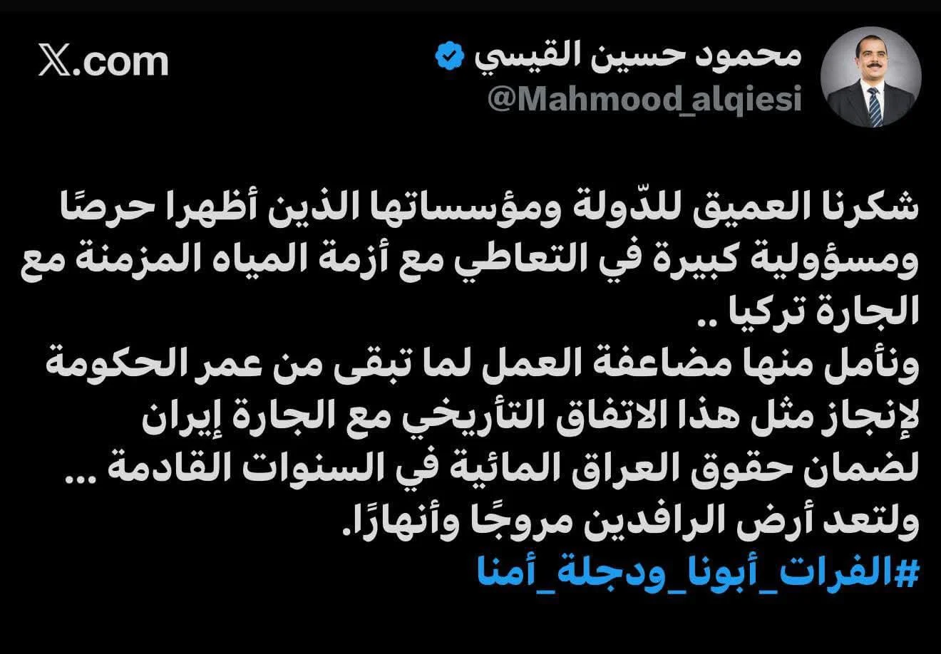 النائب محمود القيسي : الفرات أبونا ودجلة أمنا النائب محمود القيسي : الفرات أبونا ودجلة أمنا Source link
